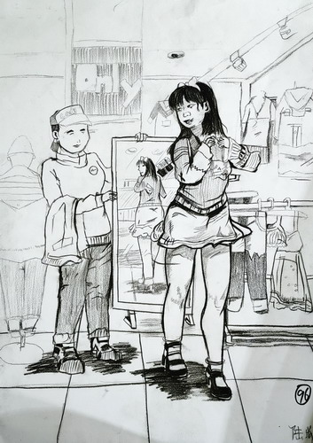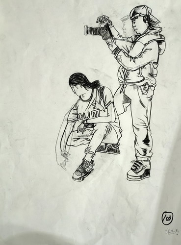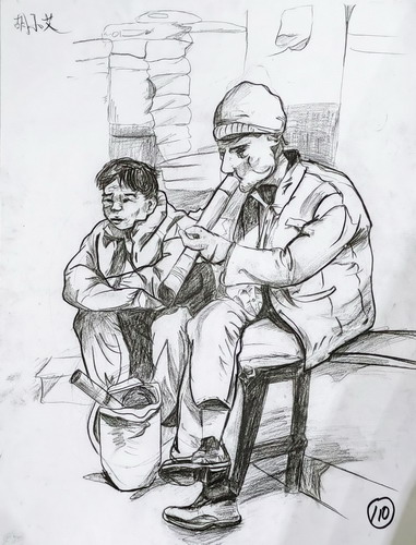 情景炭笔人物速写