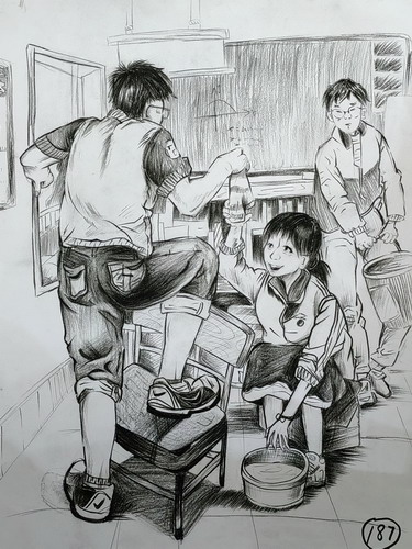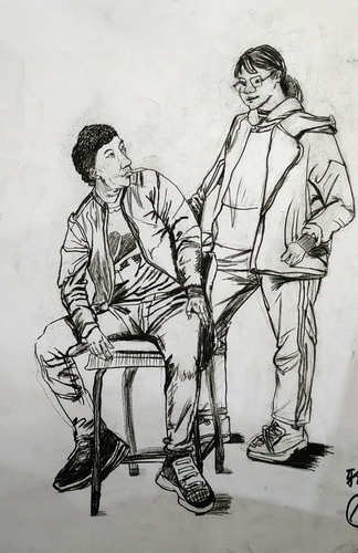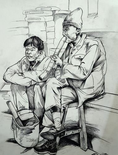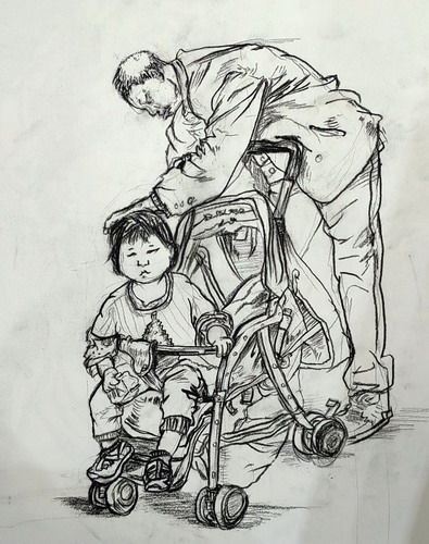 情景炭笔人物速写