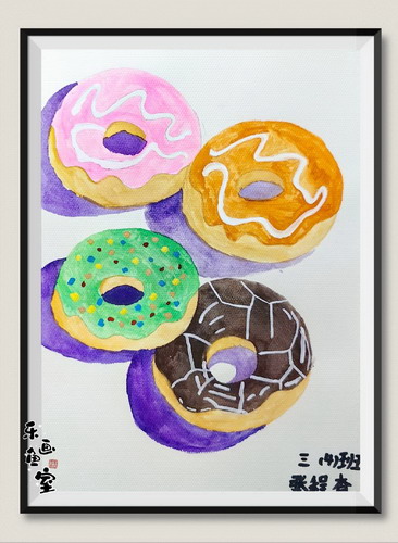 水彩画-甜甜圈