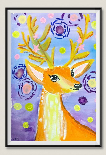 水粉画-梅花鹿