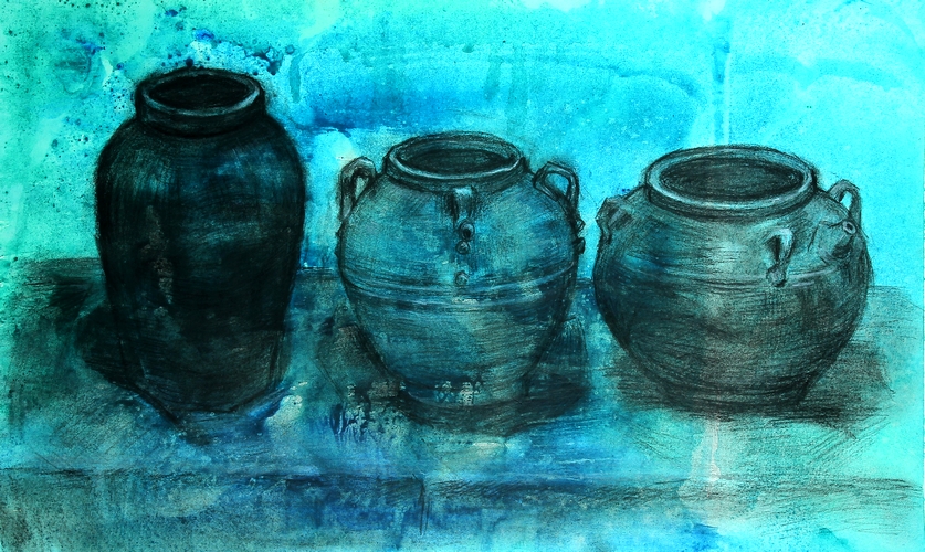 有黑色陶罐的景物
