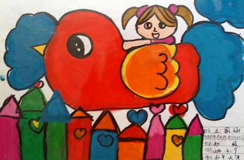 坐在和平鸽上的小姑娘