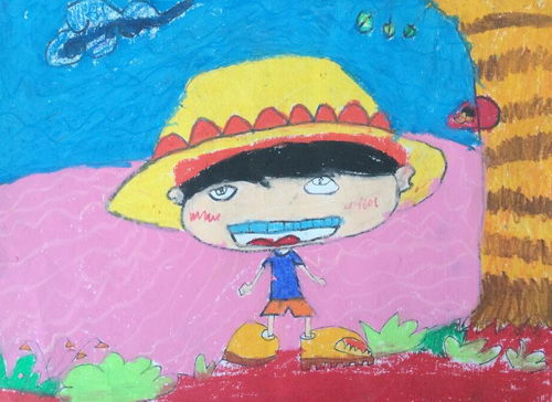 戴草帽的小男孩
