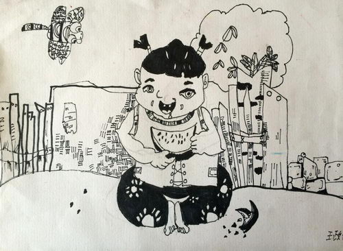 吃西瓜的小孩