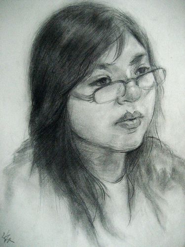 女青年头像写生