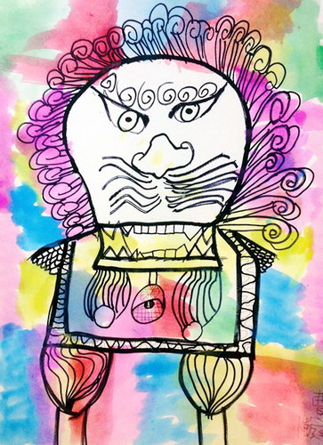 《线描石狮》
