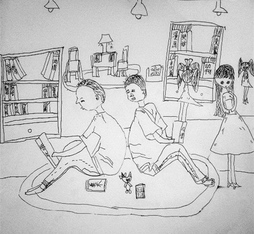 线描《图书馆》