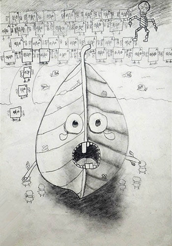 创意素描《叶子的逃亡》