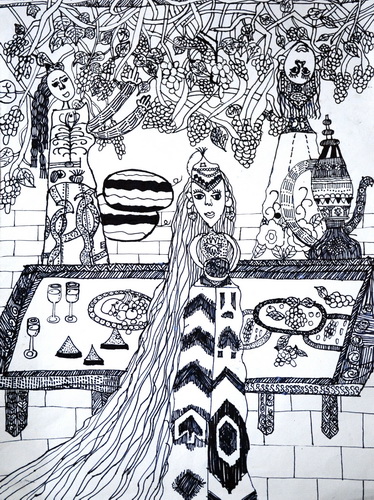 《葡萄架下的维吾尔族姑娘》