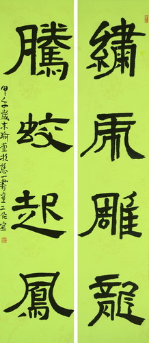 《隶书绣花腾蛟联》
