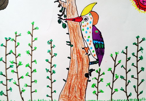 啄木鸟捉害虫