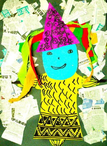 《抓髻娃娃剪纸装饰画》
