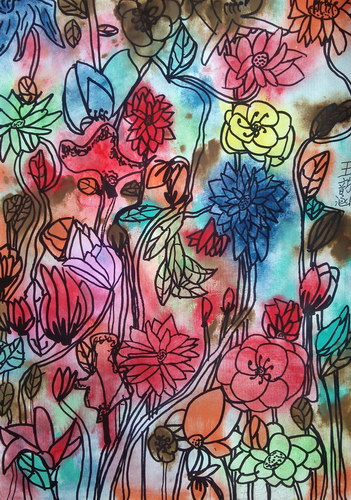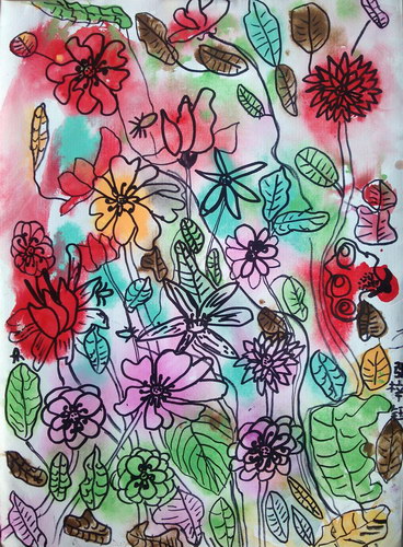 《有红花的衬布》