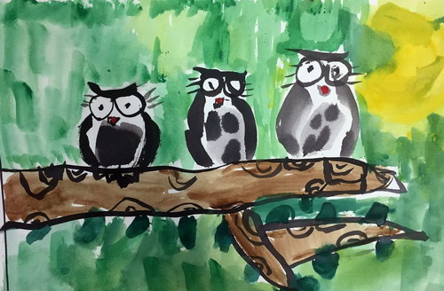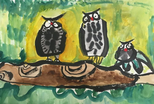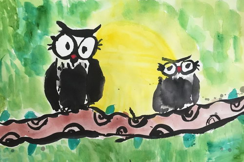 水墨猫头鹰