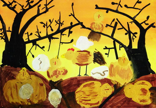 黄昏的鸡群