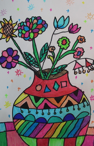 七彩花瓶里的七彩花
