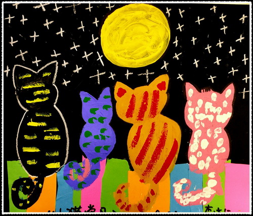 小猫赏月