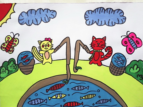 《猫兄妹钓鱼》