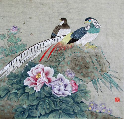牡丹锦鸡图