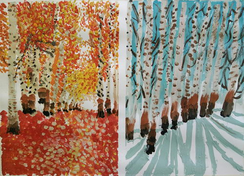 《秋日与冬日的白桦林》