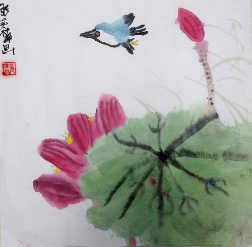 《荷花翠鸟图》