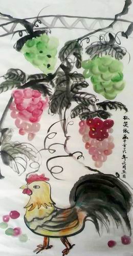 葡萄架下的大公鸡