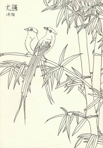 白描孔雀