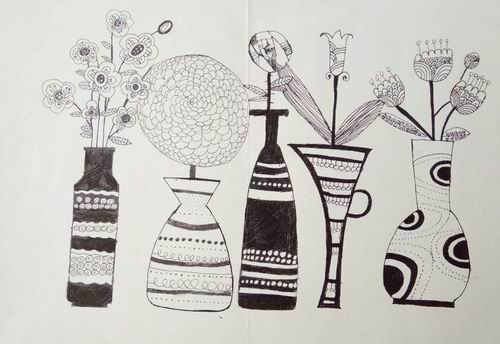 《线描画·插花》