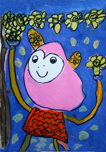 摘花的小猴子
