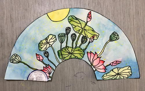 扇面荷花