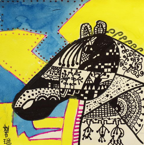 线描马