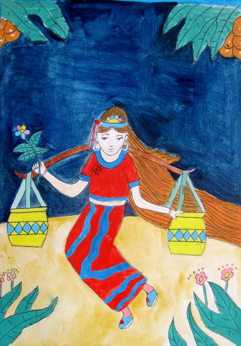 《彝族少女水粉》