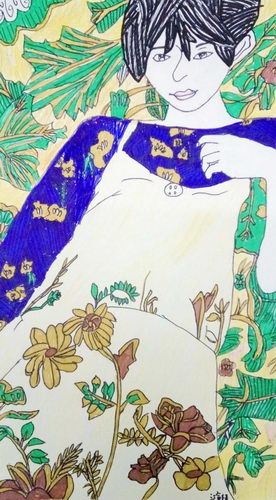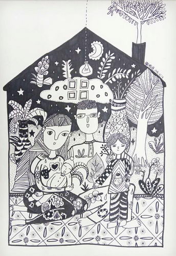 《少女线描装饰画》