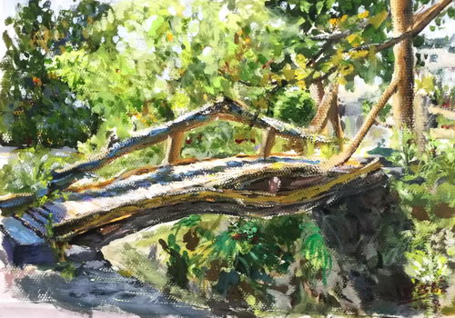 逆光中的小木桥