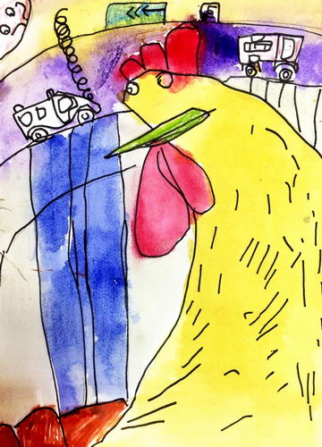 《公鸡看风景》