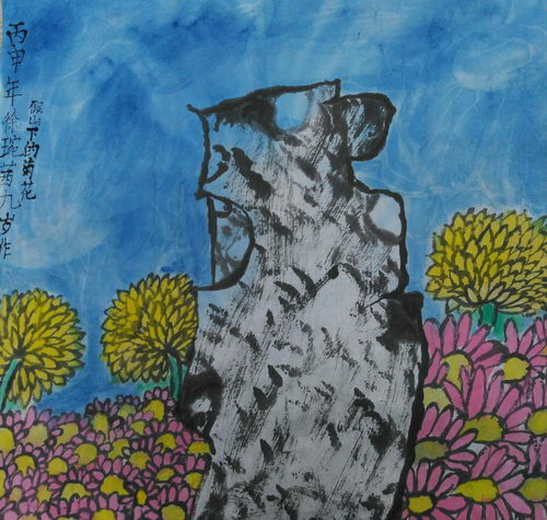 假山下的菊花