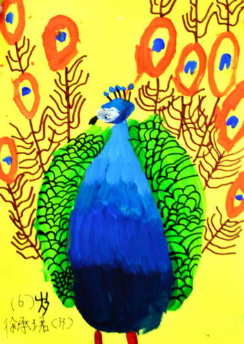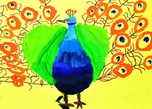 孔雀水粉画