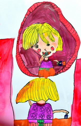 对着镜子刷牙