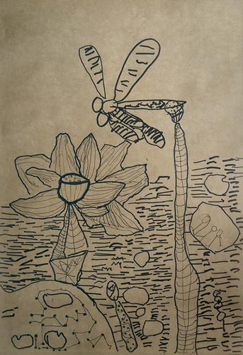 线描荷花