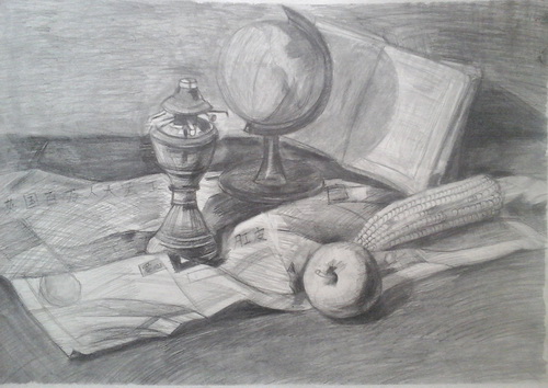 《素描静物地球仪组合》