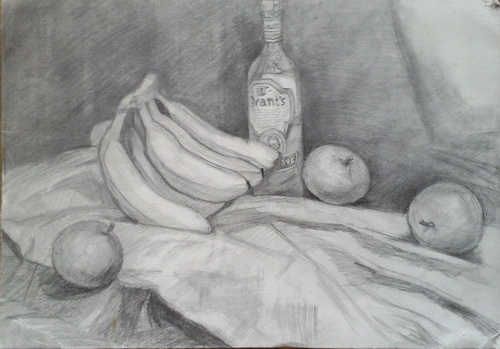 《素描静物香蕉瓶子》