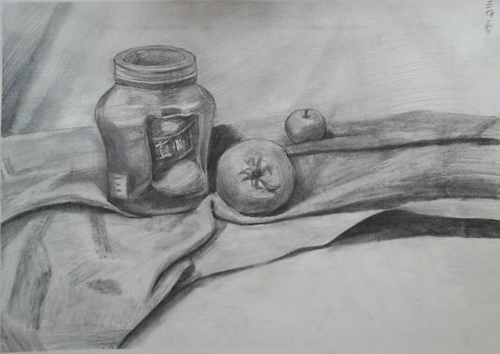 《素描静物罐子水果》