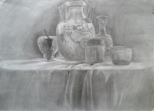 《素描静物瓶瓶罐罐》