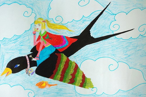 骑着小鸟去旅行的女孩