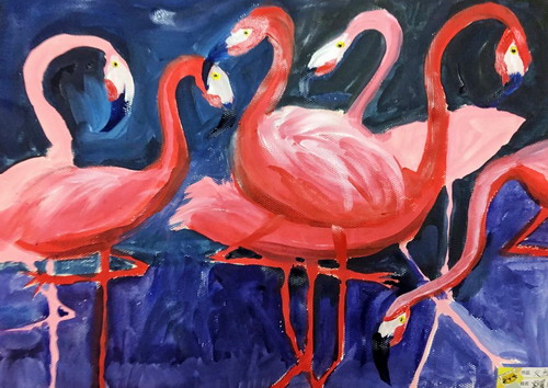 夜晚下的火烈鸟