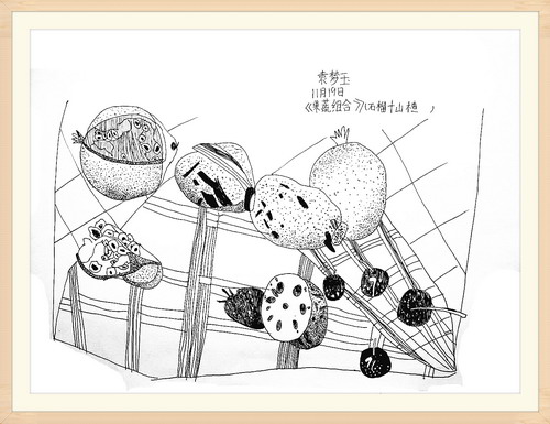 《莲藕、石榴、山楂组合写生》