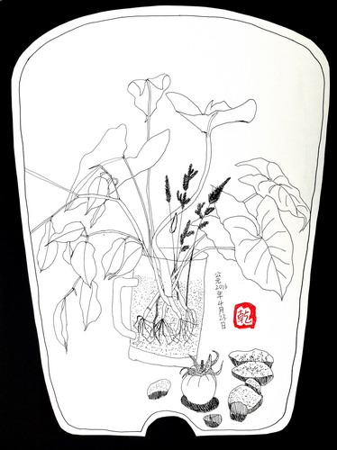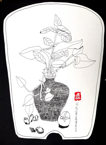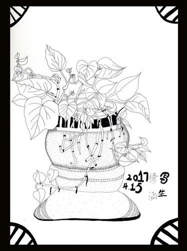 《绿萝小景写生》