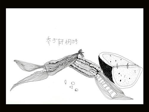 《玉米、西瓜组合写生》