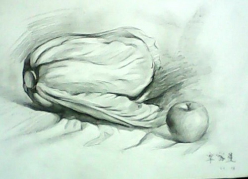 静物写生-苹果与白菜的对话》