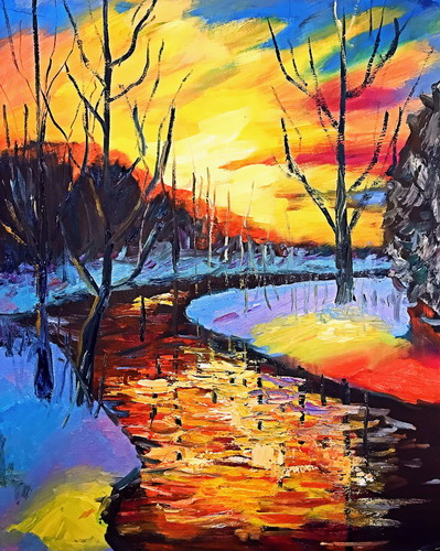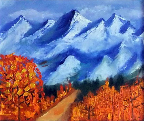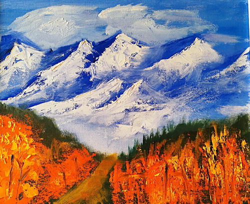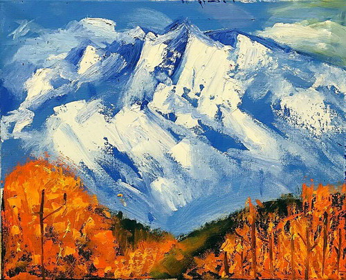 油画雪山